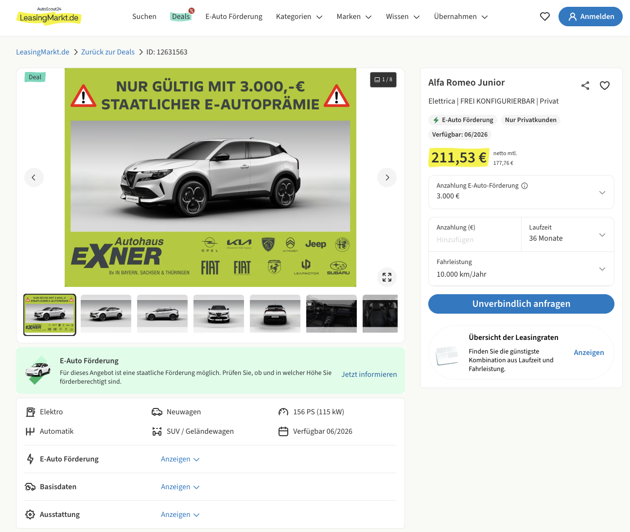 Die Kalkulation basiert auf 36 Monaten Laufzeit und 10.000 Kilometern pro Jahr, Anpassungen sind möglich. Wer ein elektrisches SUV mit italienischem Design, moderner Technik und solider Reichweite sucht, bekommt hier eine Alternative zu den üblichen Standardmodellen im Segment, mit einer Rate, die sich transparent bewerten lässt.
