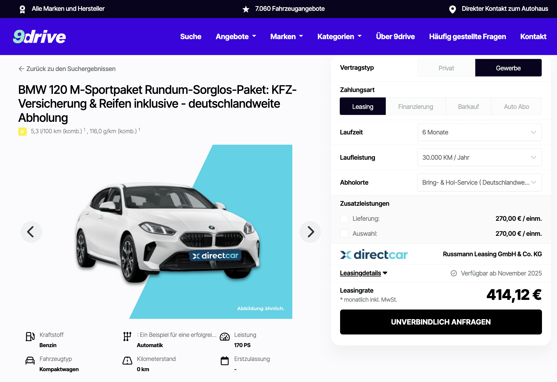 Einsteigen, losfahren, genießen – und das ohne Sorgen um Versicherung oder Reifen. Genau das bietet 9drive mit dem BMW 120 Steptronic im Rundum-Sorglos-Leasing. Für 348 Euro netto im Monat gibt’s den kompakten Münchner inklusive Kfz-Versicherung, Bereifung und einer üppigen 15.000-Kilometer-Freigrenze für die gesamte Laufzeit. Die Dauer: gerade einmal 6 Monate. Verfügbar ist das Paket ab November 2025, Zulassung kostet schlanke 79 Euro, das Rückgabe-Gutachten faire 65 Euro. Kurz gesagt: Premium auf Zeit, ohne Kompromisse.