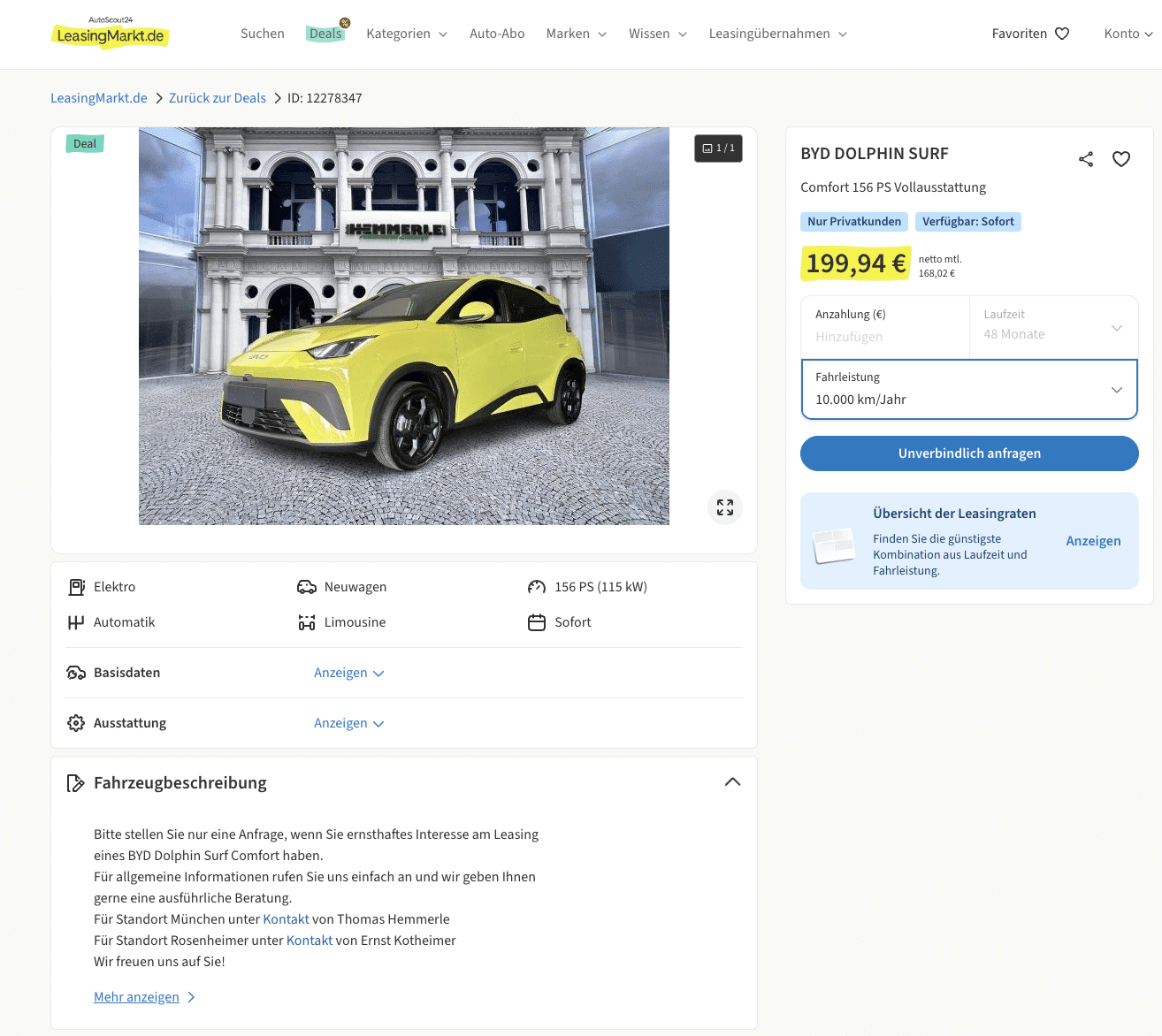 BYD Dolphin: Leasing-Kosten