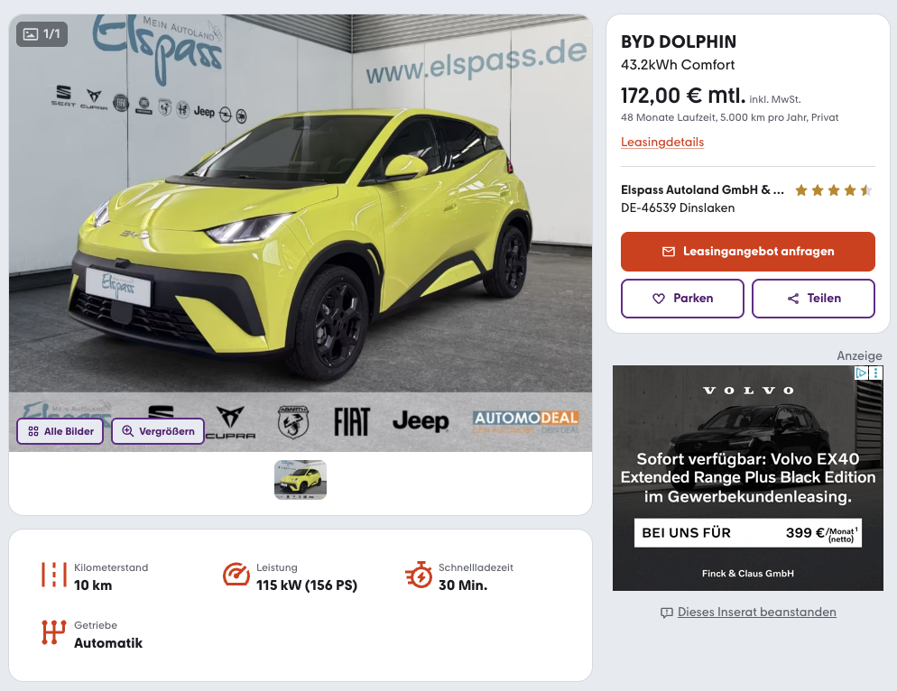 BYD Dolphin: Leasing-Kosten