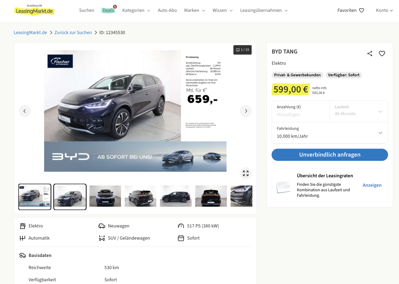 BYD Tang im Leasing als Lagerwagen für 599 Euro im Monat brutto