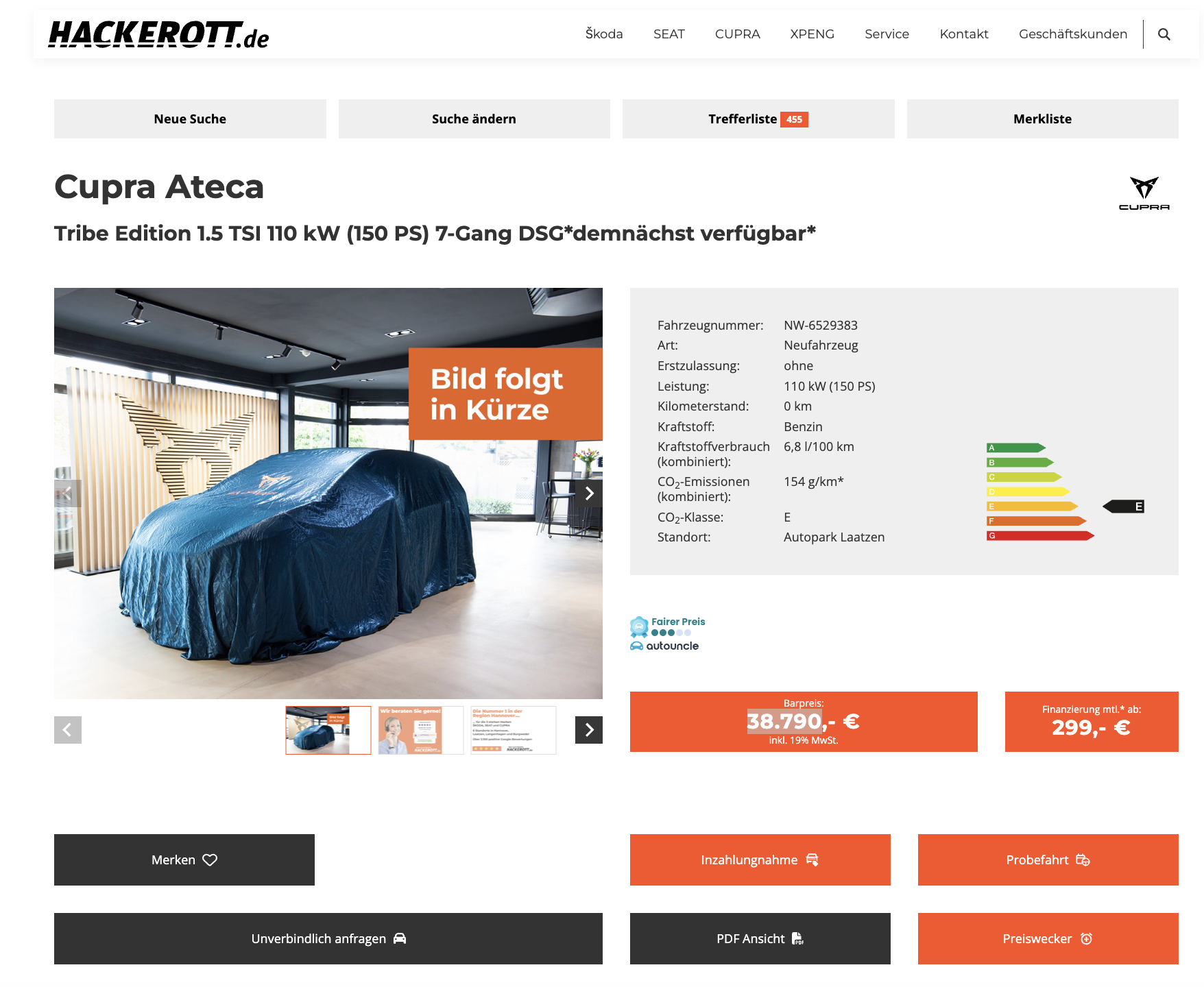 Cupra Ateca als Kaufdeal für 38.790 Euro brutto