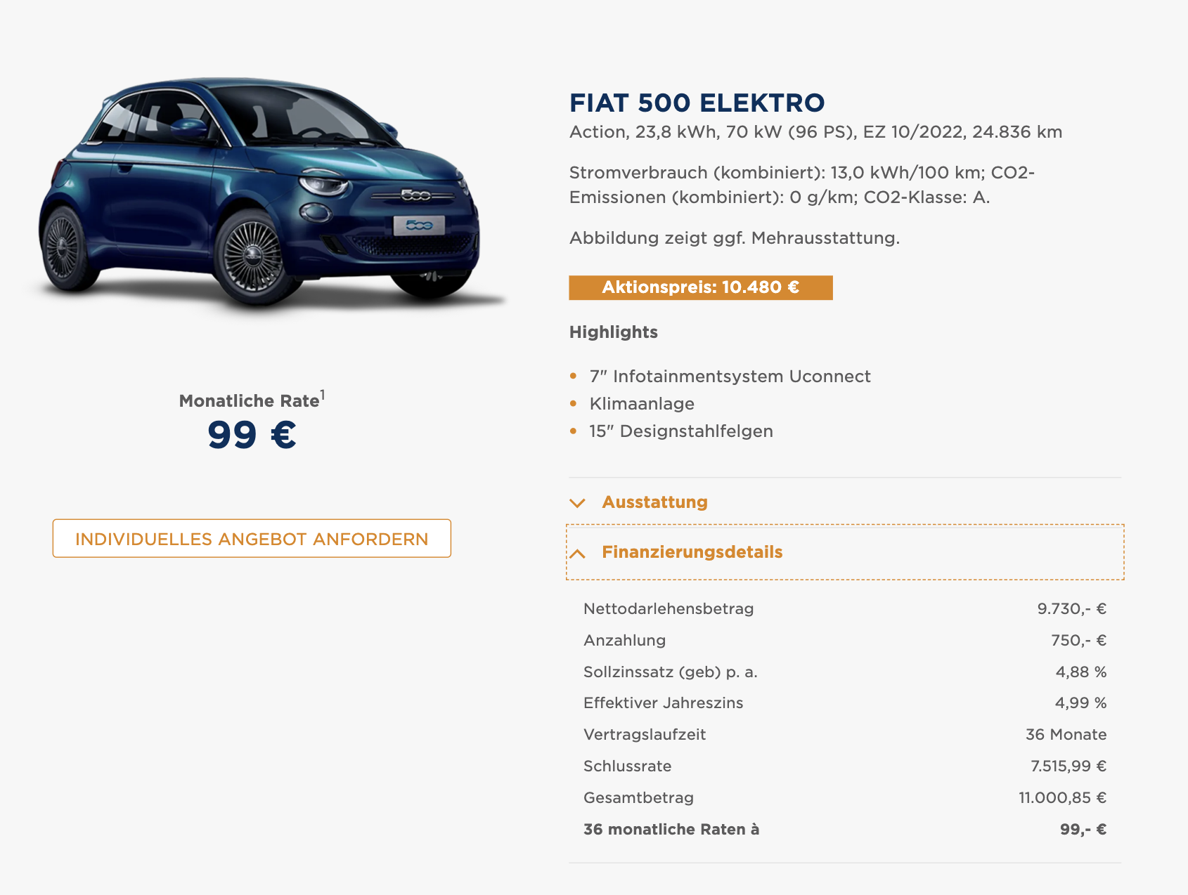 Fiat 500e als Finanzierung für 99 Euro im Monat brutto [Gebrauchtwagen]