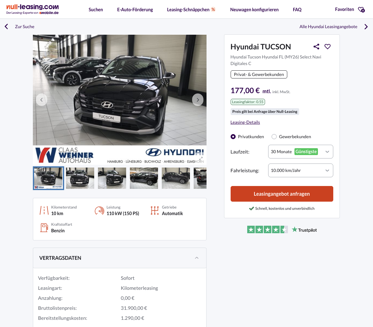 Hyundai Tucson im Leasing als Lagerwagen für 177 Euro im Monat brutto