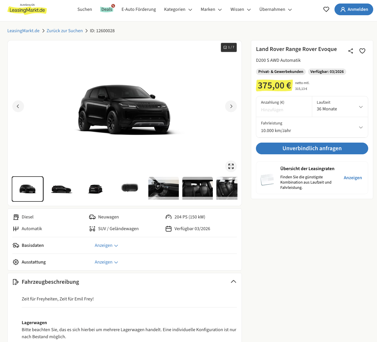 Land Rover Range Rover Evoque im Leasing als Lagerwagen für 375 Euro im Monat brutt0