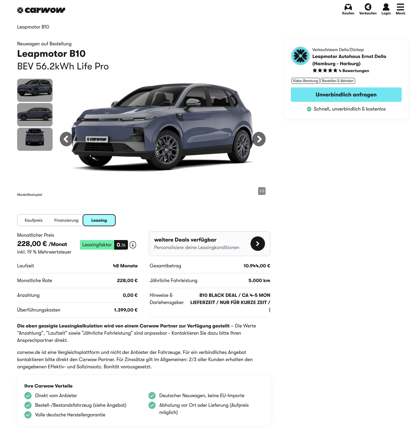 Das Angebot steht auf 48 Monaten, mit 5.000 Freikilometer pro Jahr, Laufzeit und Kilometer lassen sich an euer Profil anpassen.