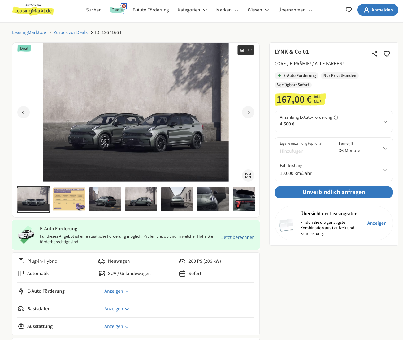 LYNK & Co 01 im Leasing als Lagerwagen für 167 [292] Euro im Monat brutto [Umwelt]