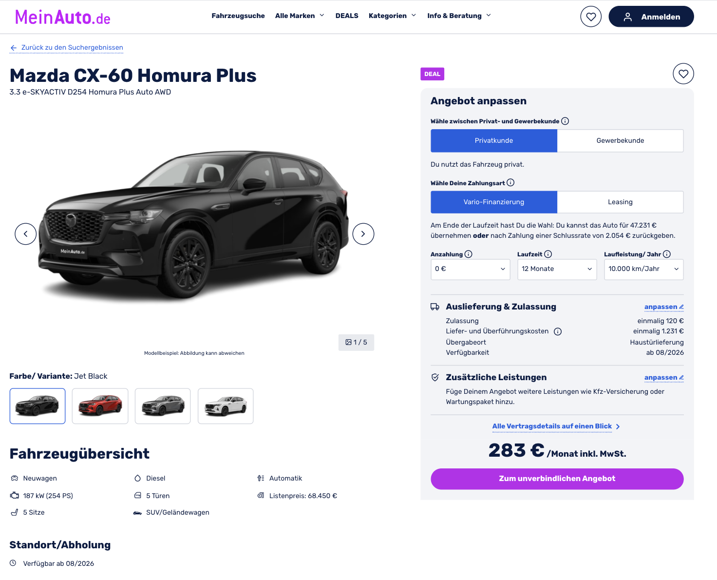 💥 Mazda CX-60 im Vario-Leasing als Vorlauffahrzeug für 283 Euro im Monat brutto