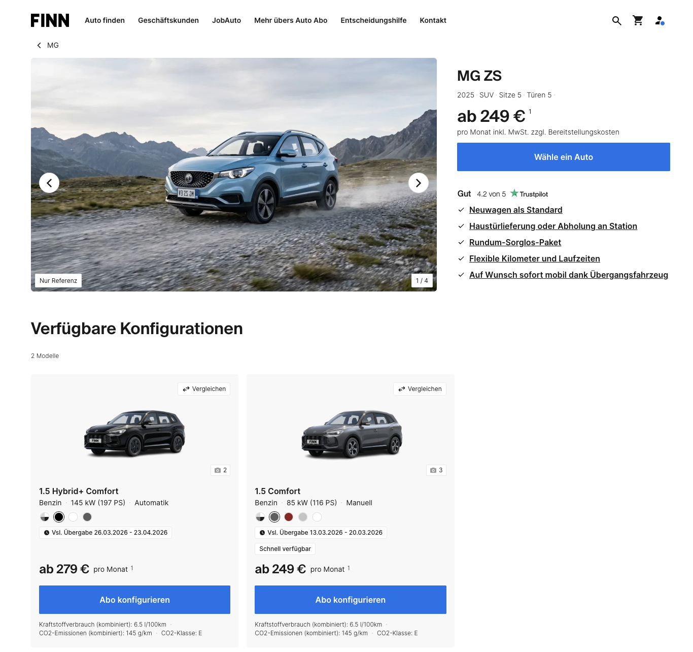 Ein Auto nutzen, ohne sich um viele klassische Nebenkosten kümmern zu müssen. MG ZS 1.5 Comfort bei FINN für 249 Euro brutto im Monat ist genau auf dieses Konzept ausgelegt. Der MG ZS wird hier nicht über ein klassisches Leasing angeboten, sondern über ein All-inclusive Auto-Abo, bei dem zahlreiche Fahrzeugkosten bereits in der monatlichen Rate enthalten sind. Das kompakte SUV ist ab dem 13.03.2026 verfügbar und richtet sich an Fahrer, die eine überschaubare Monatsrate und eine möglichst einfache Organisation ihrer Mobilität bevorzugen.