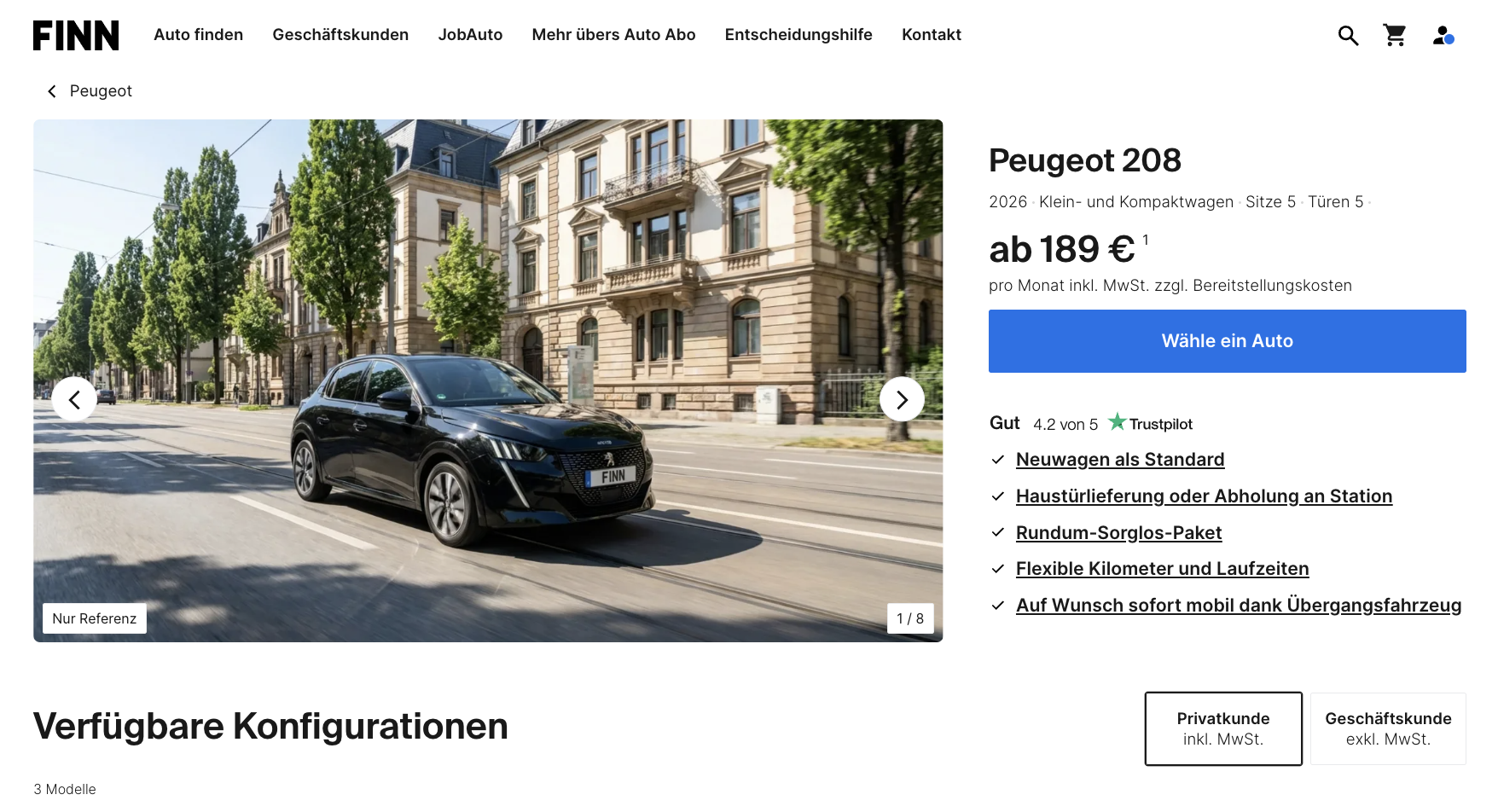 Wer einen modernen Kleinwagen sucht und sich nicht mit den typischen Nebenthemen rund ums Auto beschäftigen möchte, landet schnell bei genau solchen Abo-Angeboten. Der Peugeot 208 Hybrid 100 e-DSC6 Style bei FINN für 189 Euro brutto im Monat setzt weniger auf klassische Leasinglogik und mehr auf ein einfaches Gesamtpaket. Das Fahrzeug ist ab dem 30.09.2026 verfügbar und passt vor allem zu allen, die planbare Kosten und wenig organisatorischen Aufwand schätzen.