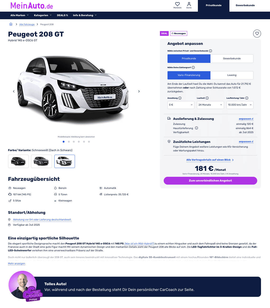 Weil der gleiche Peugeot 208 GT bei anderen Anbietern 440 Euro brutto im Monat kostet. Mehr als das Doppelte!