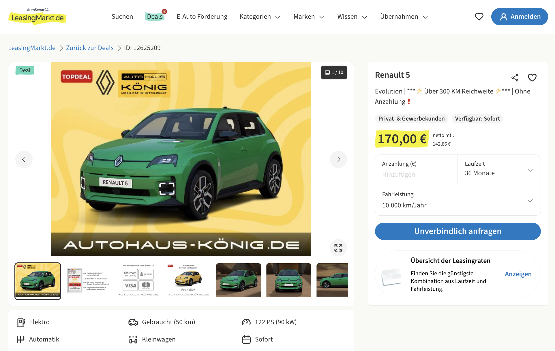 Renault 5 im Leasing als Tageszulassung für 170 Euro im Monat brutto