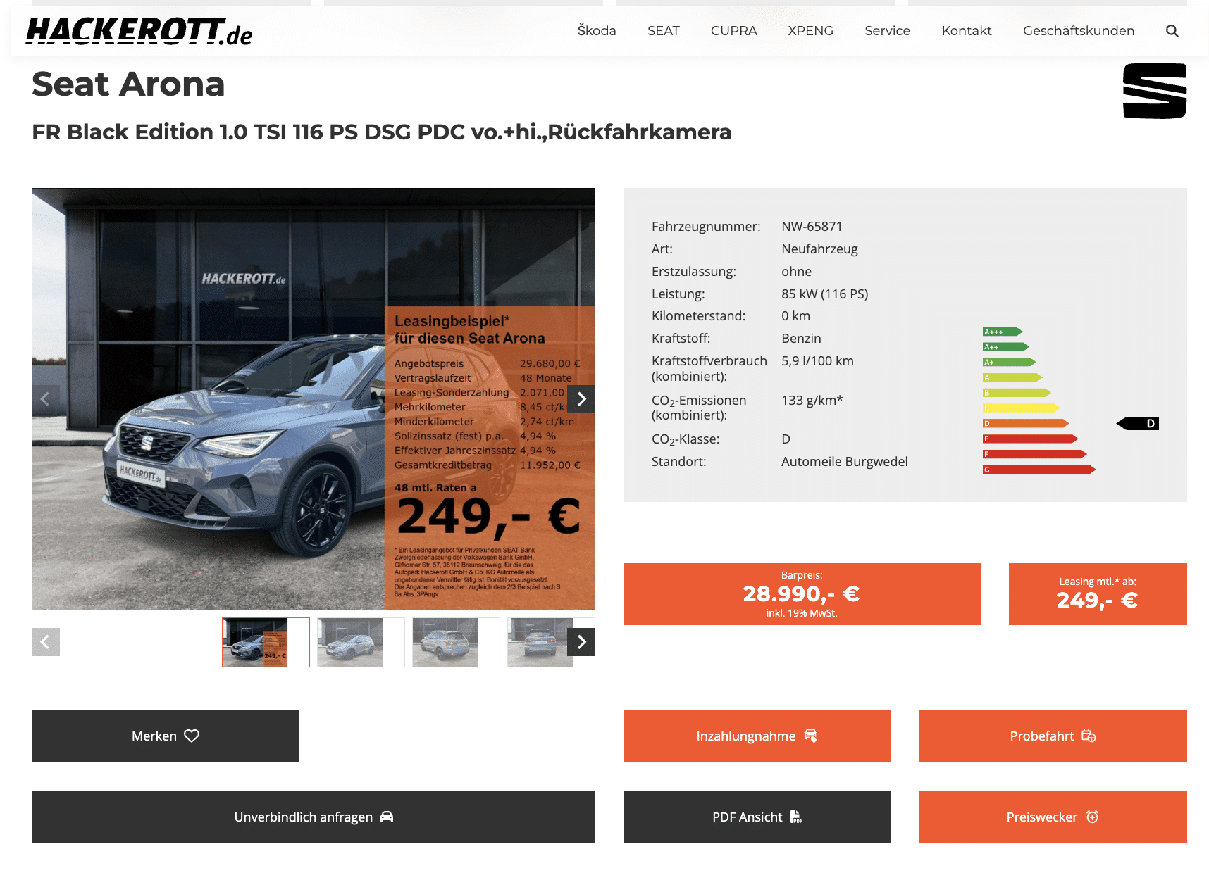 Euch reizt ein kompaktes SUV mit klarer Kante und echter Alltagstauglichkeit. Hackerott liefert genau das, den SEAT Arona 1.0 TSI 85 kW DSG FR Black Edition zum Kaufpreis von 28.990 Euro. Der Auftritt ist selbstbewusst, die Technik auf Höhe der Zeit, das Paket passt für Stadt, Pendelstrecke und Wochenendtour gleichermaßen.