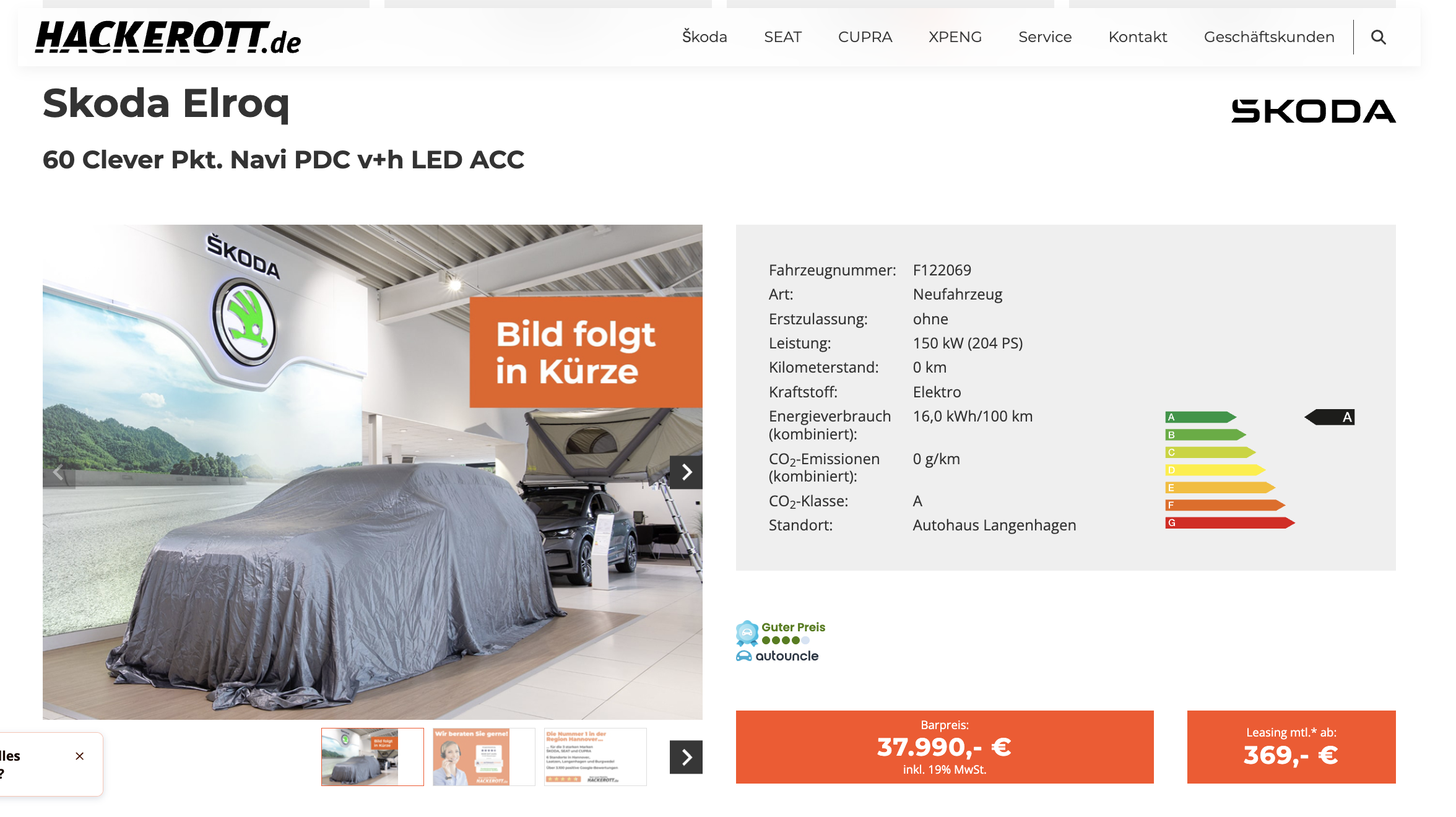 Skoda gehört zu den Vorreitern in Sachen E-SUVs. Beim Autohaus Hackerott kann nun der Škoda Elroq 60 Clever im Privatleasing für nur 369 Euro brutto pro Monat bestellt werden.