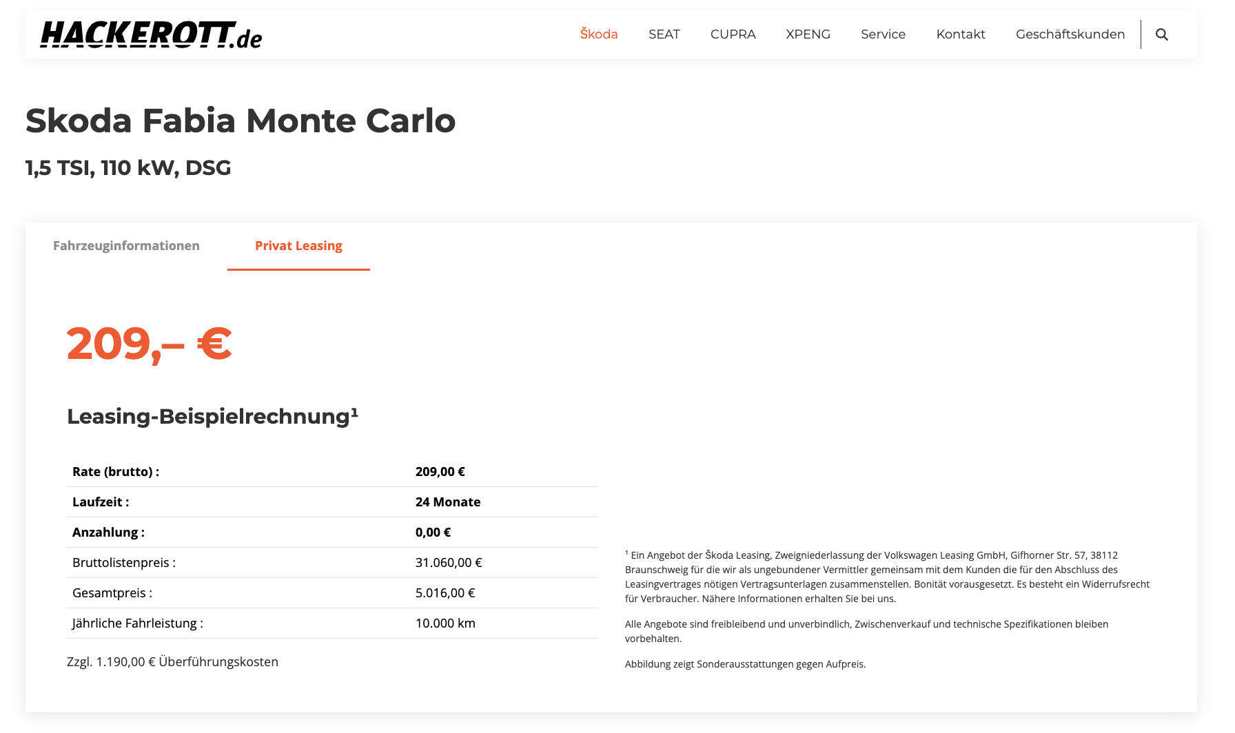 Škoda Fabia: Leasing-Kosten