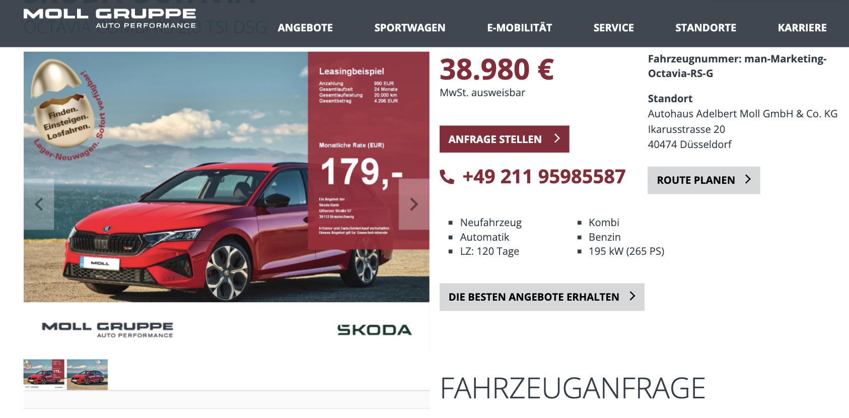 Kalkuliert wurde das Angebot mit 24 Monaten Laufzeit und 10.000 Kilometern pro Jahr. Gerade im direkten Vergleich bekommt die Rate zusätzlich Gewicht. Während ein ähnlicher Škoda Octavia Combi RS beim Marktführer bei rund 368 Euro netto pro Monat liegt, steht dieses Angebot mit 179 Euro netto deutlich günstiger da. Genau dadurch wird aus einem ohnehin spannenden Auto ein Deal, der nicht nur über Leistung und Raumangebot funktioniert, sondern vor allem auch über einen Preis, der im Segment ungewöhnlich stark ausfällt.