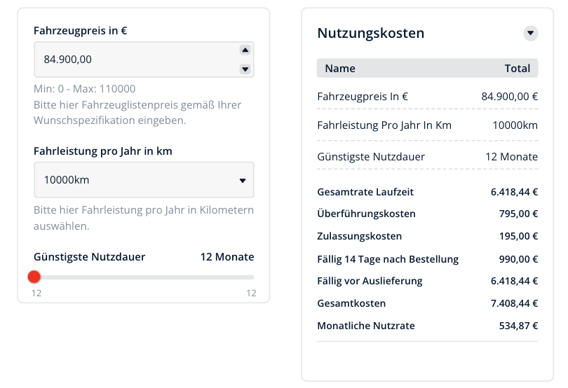 | Gesamtkosten / Monat | 617,37 € | 518,80 € |