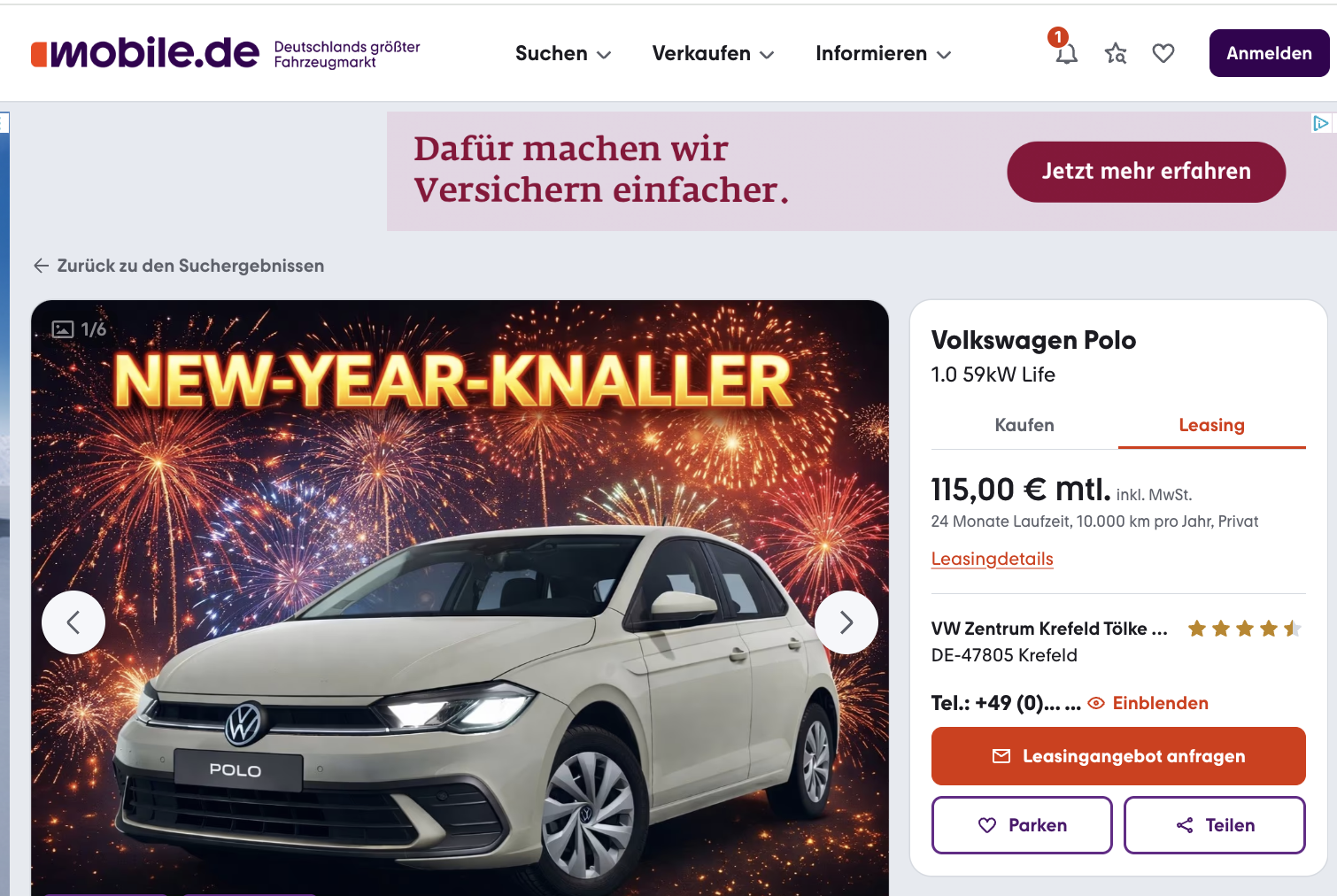 Ein ehrlicher Kleinwagen, der im Alltag einfach funktioniert und genau deshalb so beliebt ist. VW Polo 1.0 59 kW Life bei mobile.de für 115 Euro brutto pro Monat bringt den Klassiker wieder in eine Preisregion, in der man zweimal hinschaut. Dazu kommt ein wichtiges Detail für alle, die es gern genau passend haben, es handelt sich um ein frei konfigurierbares Bestellfahrzeug, der Polo lässt sich also nach Wunsch zusammenstellen. Die Lieferzeit liegt bei rund sechs Monaten.